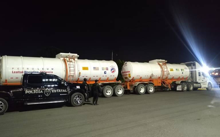A double trailer tractor-trailer loaded with 62 thousand liters of hydrocarbons was seized by members of the Regional Police of the State Security Secretariat (SSE) in the municipality of Lagos de Moreno. Moments before, the vehicle transporting the fuel had been stolen.