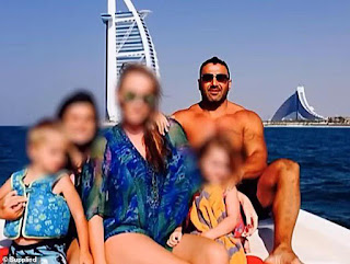 Pandeli with his family in front of the Burj hotel in Dubai.