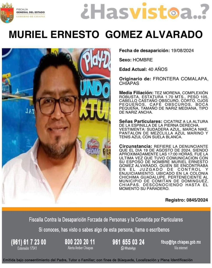 Muriel Ernesto Gómez Alvarado, the brother of veteran Chiapas correspondent Isain Mandujano, has gone missing, reported the journalist on his Twitter this afternoon. Also missing are four others; a woman, a child, and two young men.