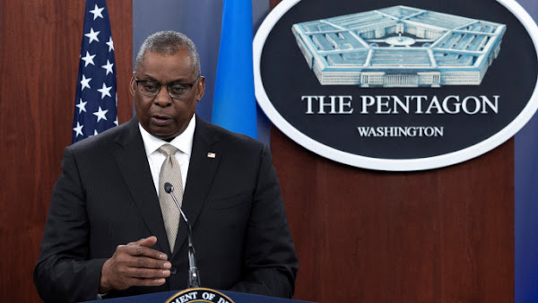U.S. Defense Secretary Lloyd Austin speaks during a news briefing after participating a virtual Ukraine Defense Contact Group meeting at…