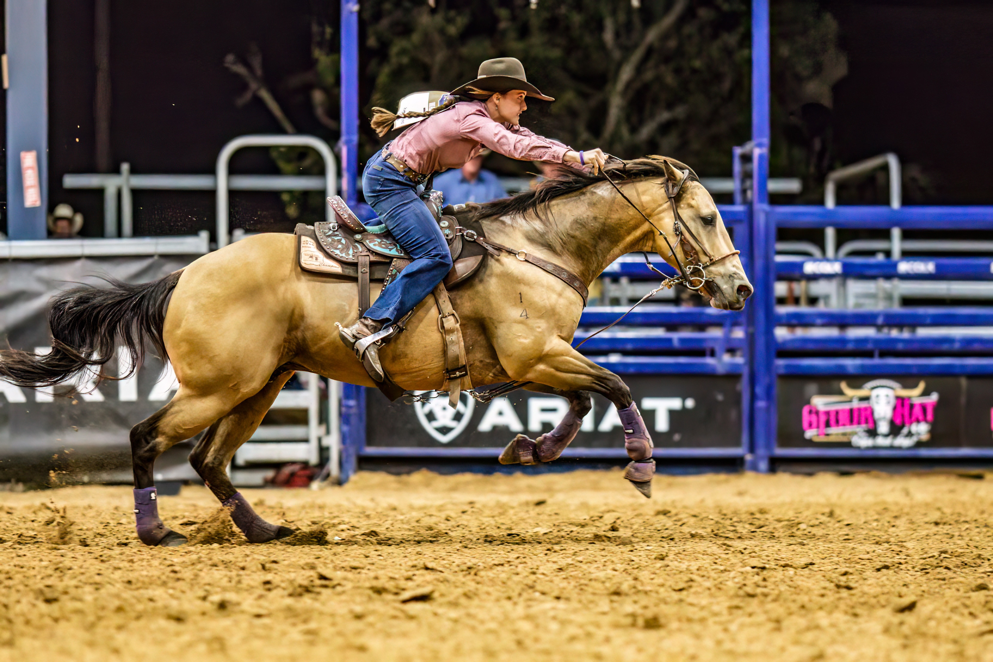 This weekend, she is competing at the Australian Professional Rodeo Association’s national finals in the ladies’ barrel racing.