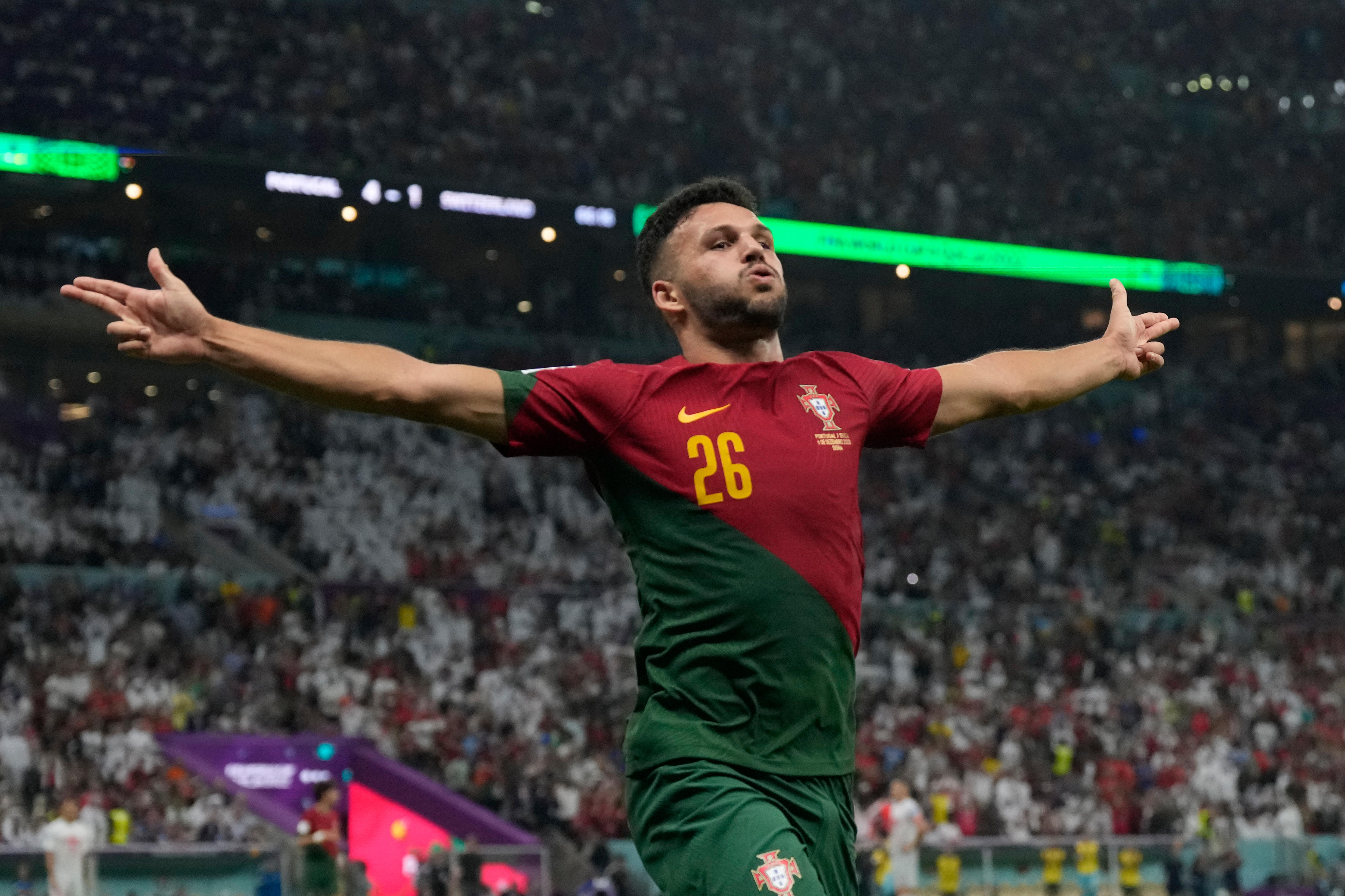 With Cristiano Ronaldo benched, his replacement has scored the first hat-trick of the Qatar World Cup as Portugal locked up the last quarterfinal spot with a 6-1 demolition of Switzerland.