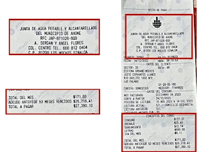 A receipt from the Drinking Water and Sewerage Board of the municipality of Ahome, addressed to Justo Cervantes Llanes, was discovered inside the property. The receipt reveals an outstanding debt of MXN$27,390 (US$1,613), accumulated over 53 months of unpaid water service.