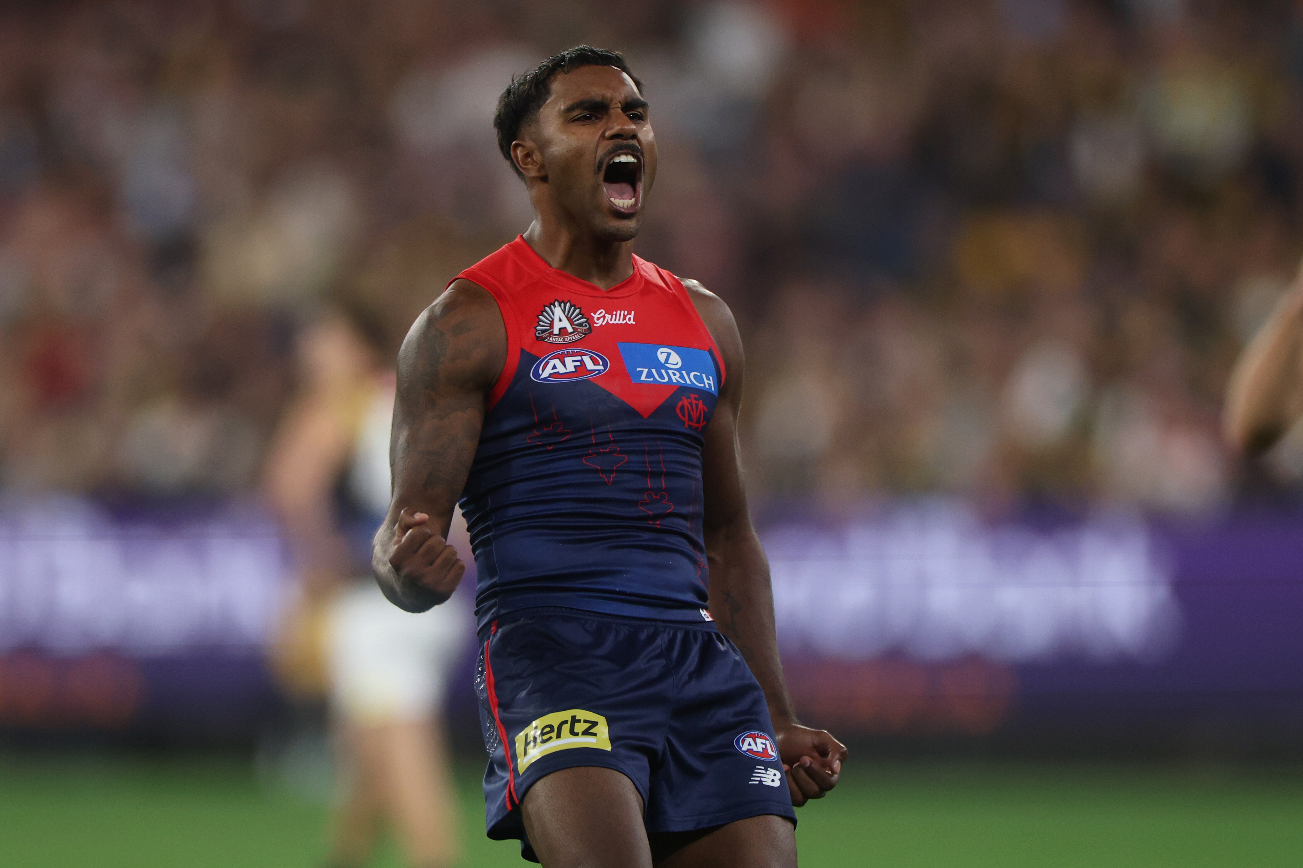 The 24-year-old leads 14th-placed Melbourne (5-8) with 21 goals after kicking three in their King’s Birthday blockbuster against Collingwood, ahead of Bayley Fritsch (14).