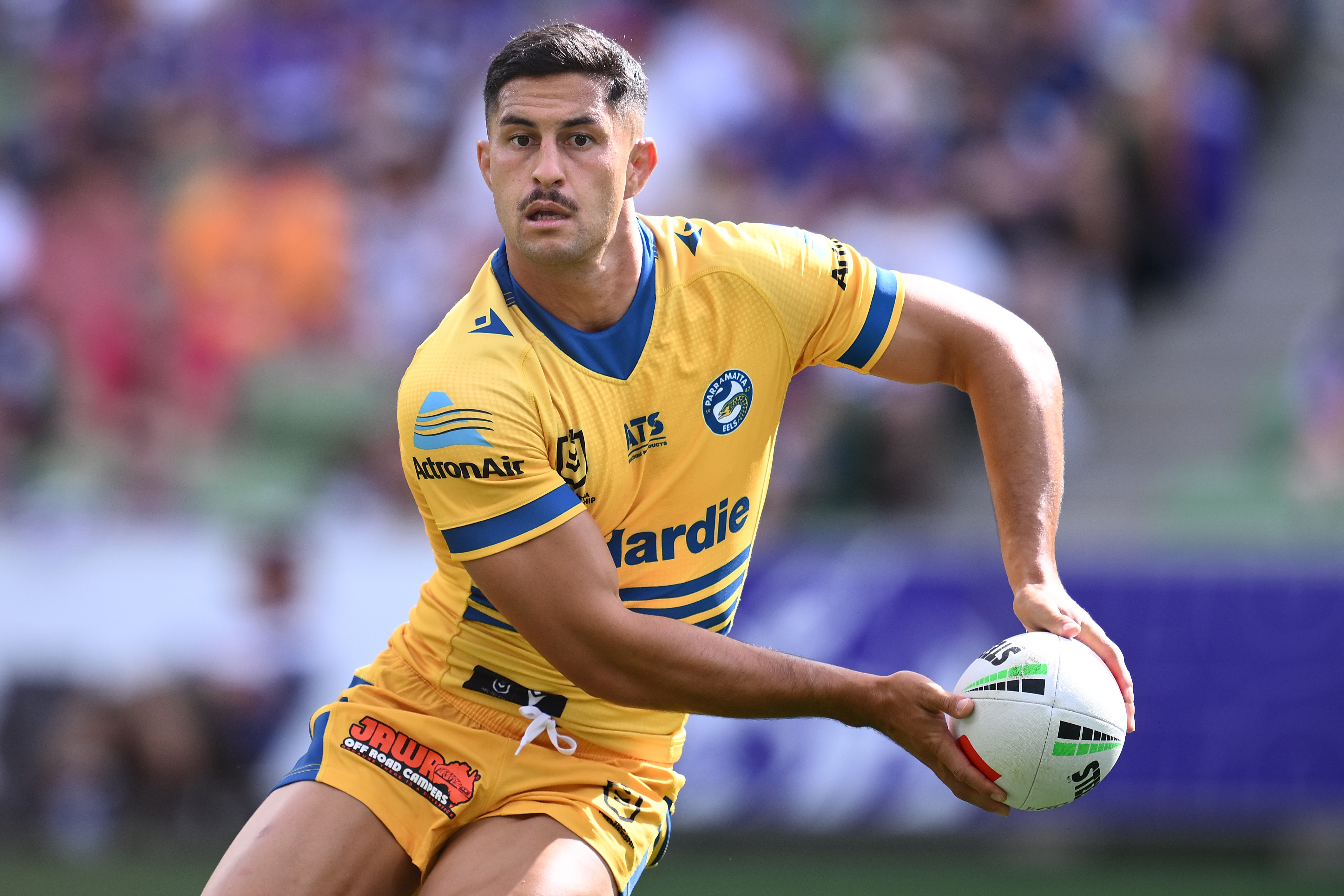He was also the starting five-eighth for the Eels’s horror start to 2025, beaten by the Stom in Melbourne 56-18.