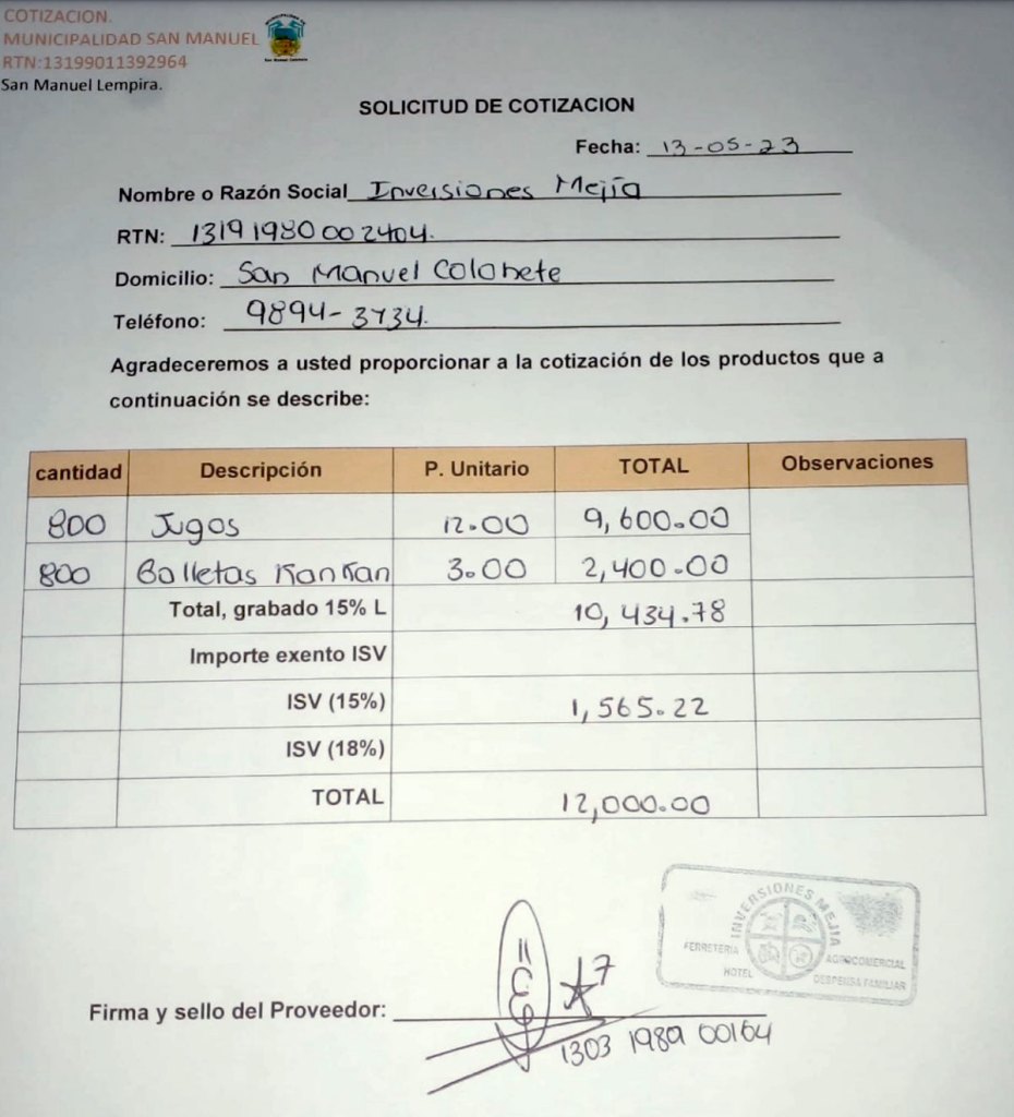 The governor later told InSight Crime that he had no knowledge of the road until after he heard complaints and was contacted by the ICF. But soon after the meeting request was ignored, documents obtained by InSight Crime show that Mejía contracted a company co-owned by the governor’s son to repave a road in the center of San Manuel de Colohete. The project was worth almost $2 million Lempiras (about $80,000). Mejía has also been photographed alongside the governor and his son at different Libre Party events.