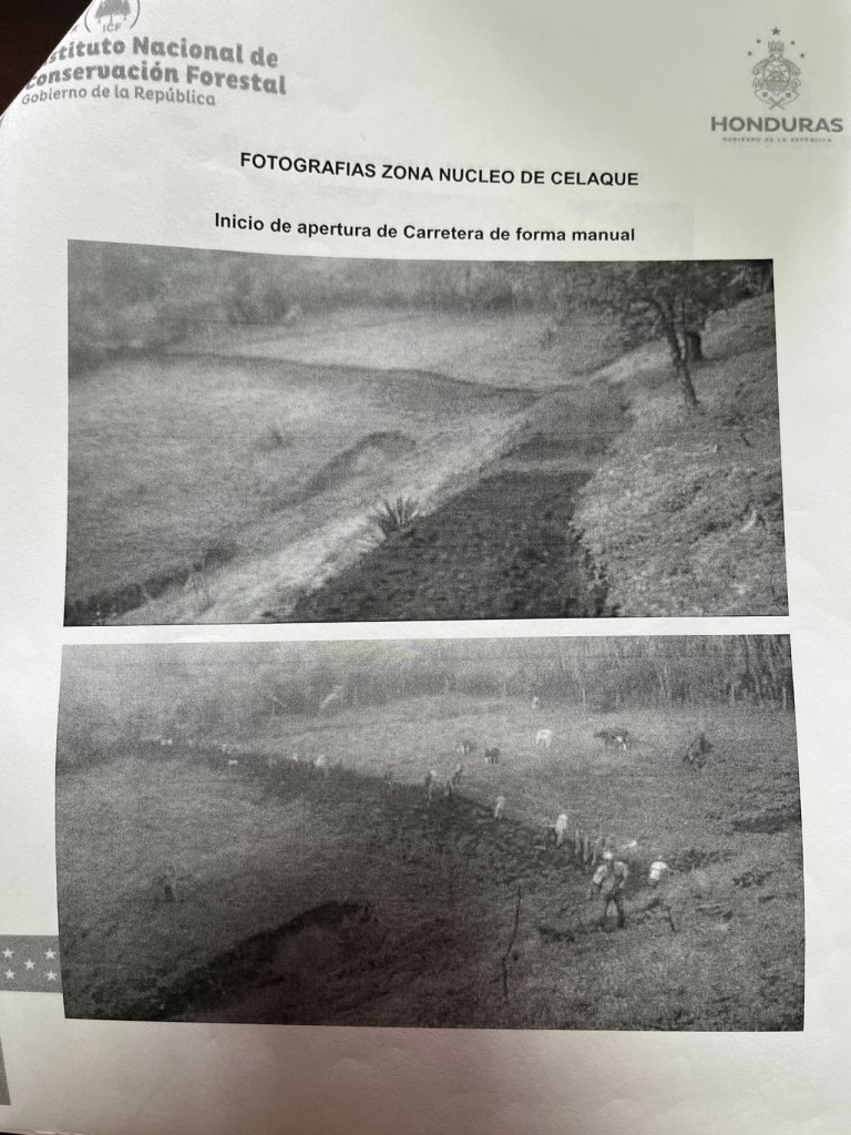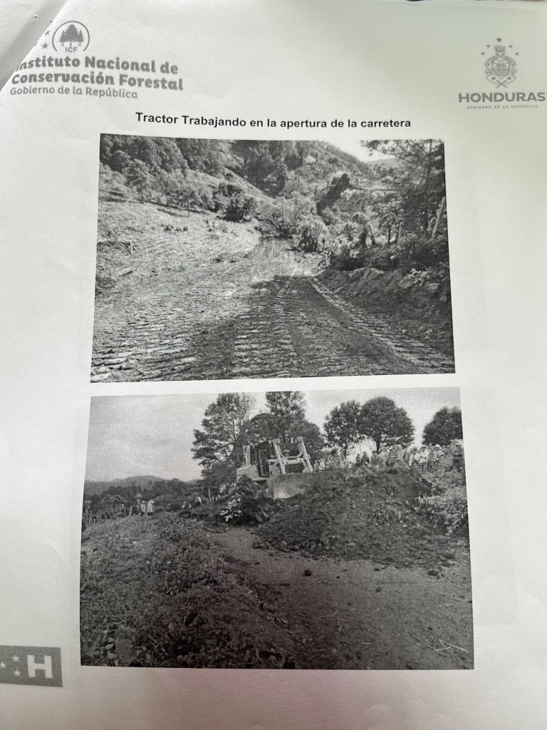 Two months later, photos and other video evidence surfaced showing that the initial manual labor had given way to heavy machinery. Alarmed, members of the ICF, as well as the Mancomunidad de Municipios del Parque Nacional Montaña de Celaque (MAPANCE), which was formed to manage and protect the park’s natural resources, notified the Attorney General’s Office.