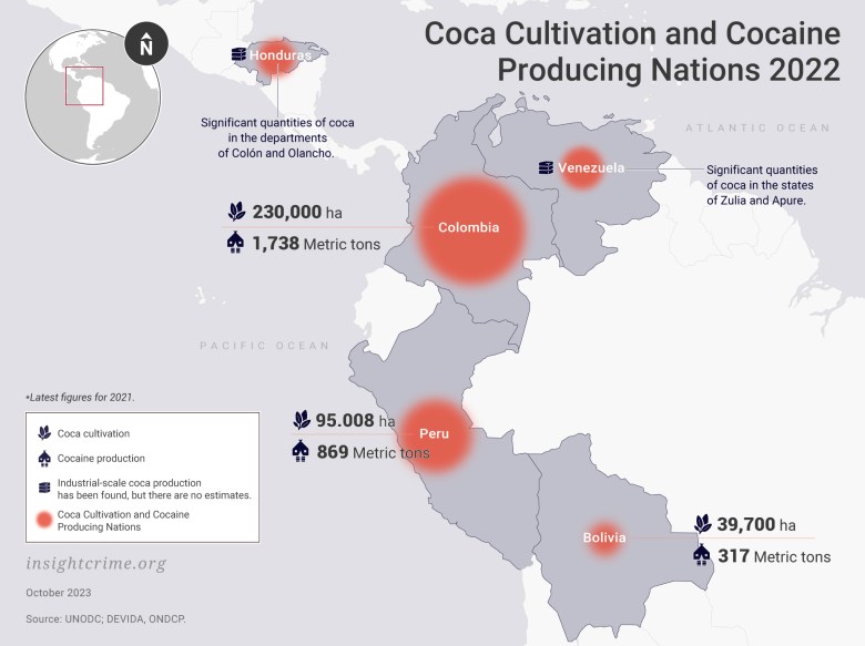 While coca cultivation has grown exponentially in Colombia, Peru and Bolivia have also seen increases. What is worrying in these two nations is how political chaos is pushing counternarcotics strategies further and further down the list of government priorities. In Peru, President Pedro Castillo was removed from office and imprisoned in December 2022, while his deputy and successor, Dina Boluarte, has faced widespread civil unrest. In Bolivia, a civil war within the ruling Movement to Socialism Party (Movimiento al Socialismo – MAS), between current President Luis Arce and former President Evo Morales, has hijacked the political agenda. Bolivia is preparing for general elections for the presidency and Congress in 2024. In Colombia, Petro has seen his approval ratings drop to the lowest point of his tenure. All of this means that there will be diminishing resistance to cocaine trafficking during 2024 in the main production nations, while transnational organized crime sorts out its supply chain issues.