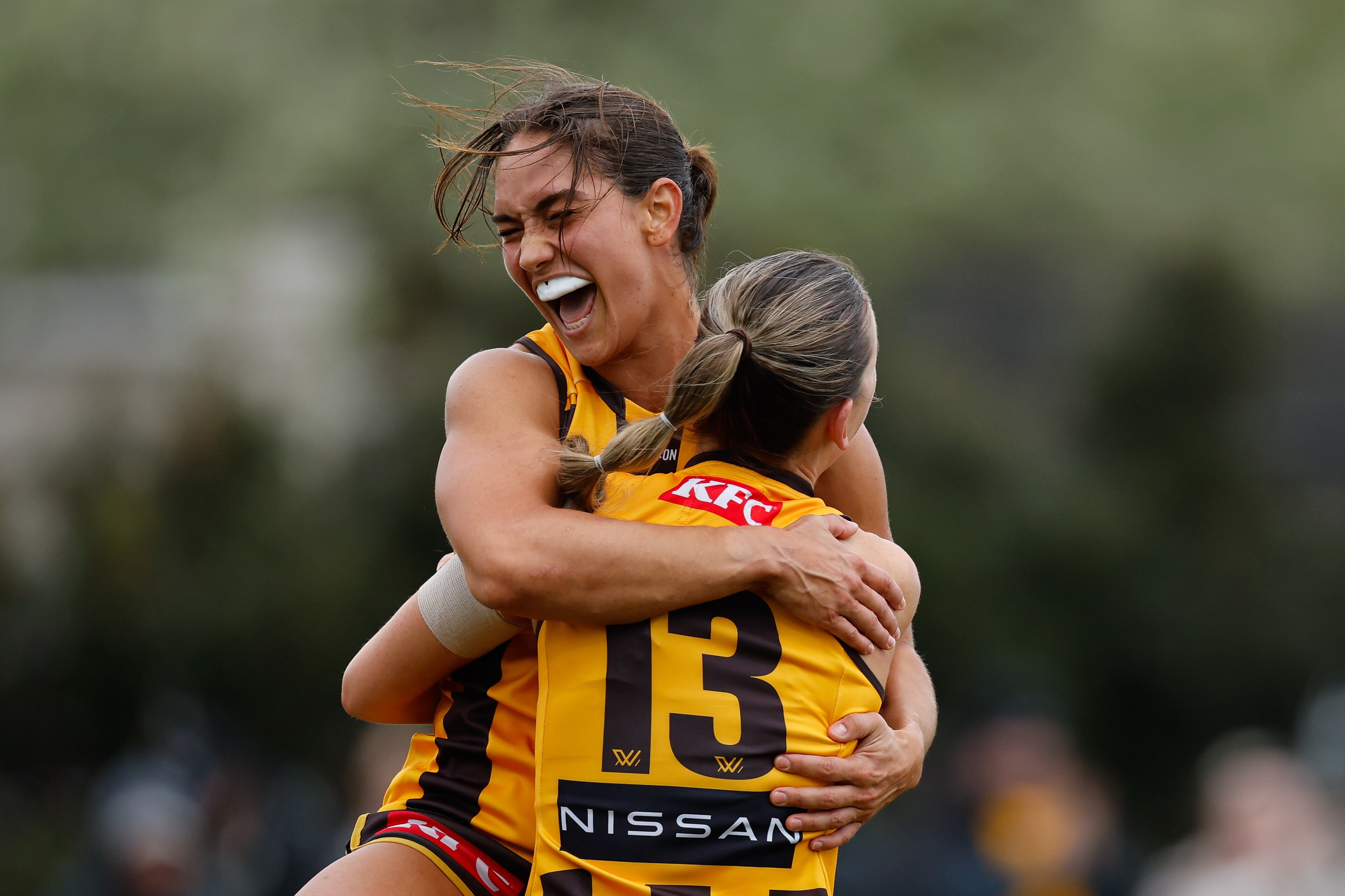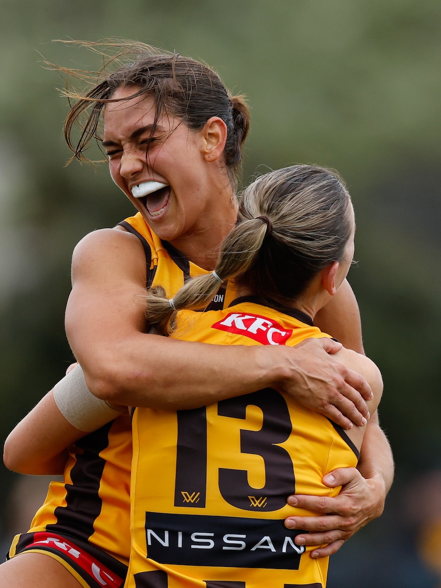 But led by recruit Eliza West, the Hawks handled the wind better, while providing exciting glimpses of what was to come in a 9.12 (66) to 4.4 (28) win in front of 2794 fans.