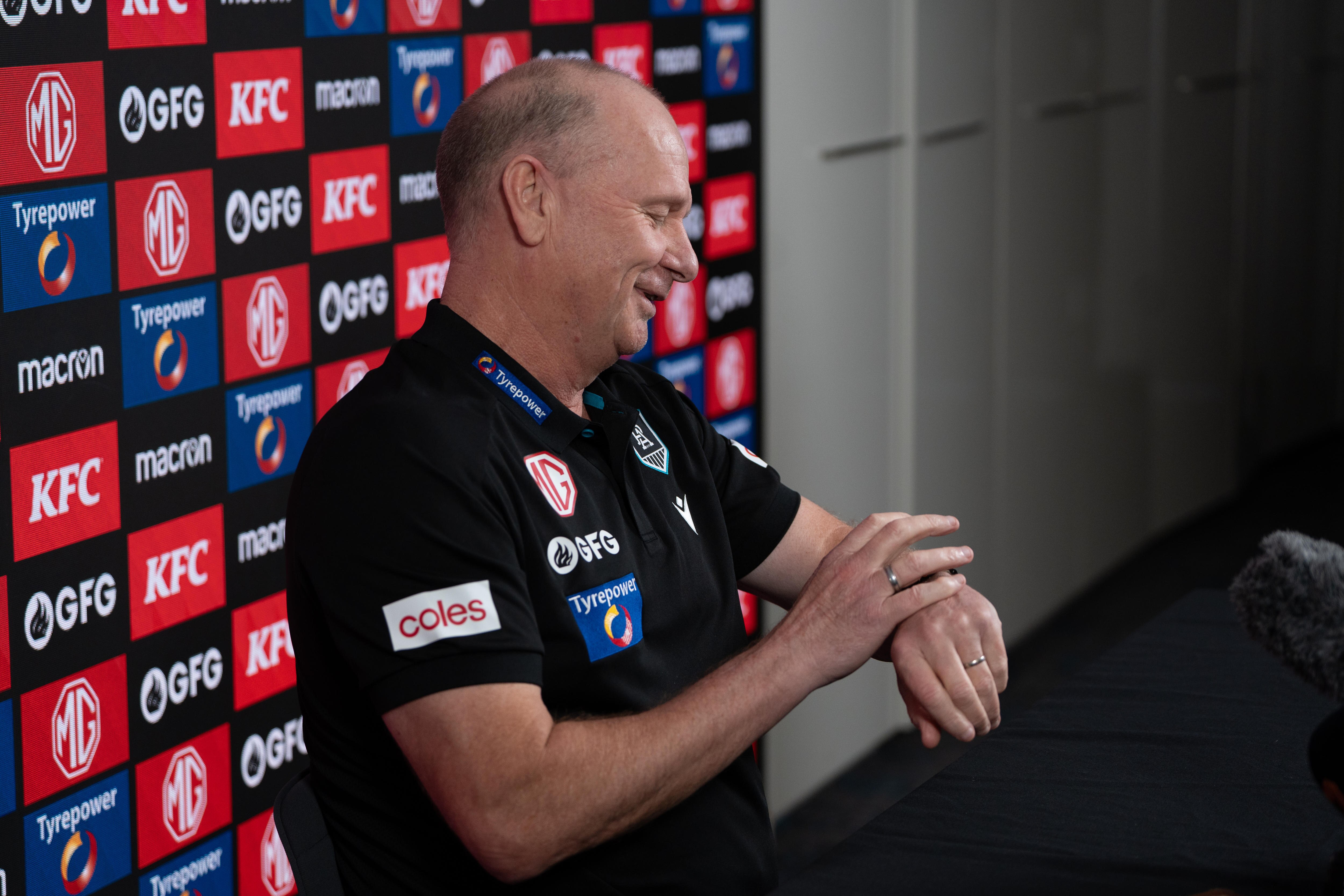 Hinkley’s Tuesday media conference was held in Power heartland, at the club’s Alberton headquarters.