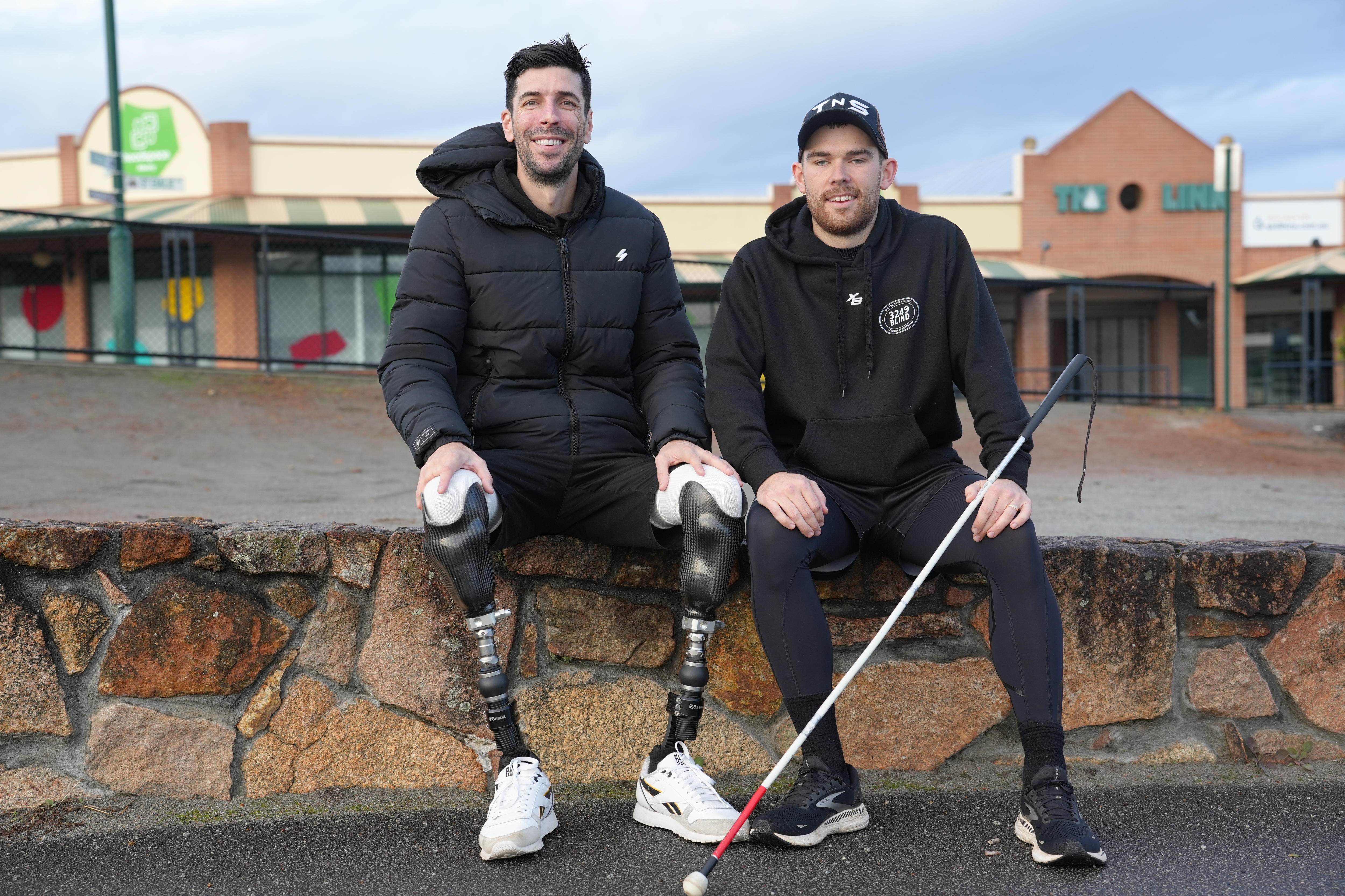 Mr Pettingill, who is 98 per cent blind, and Mr Rolls call themselves “Legless and Blind” and travel the country with their organisation Real Life Resilience to raise awareness for mental health by doing talks in rural and regional communities.