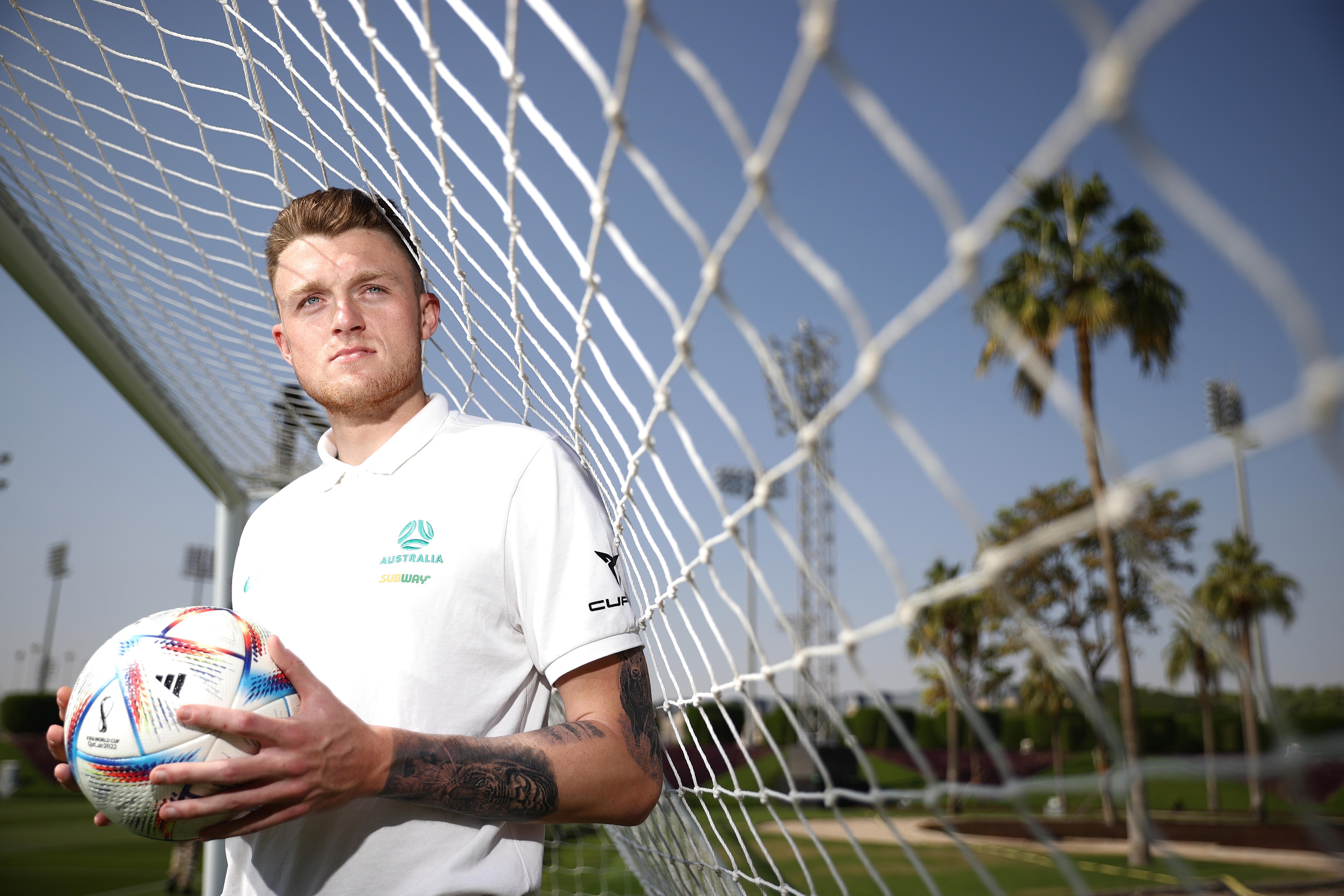 At 198cm – one of the tallest players at this World Cup – the Socceroos centre-back is a dizzying presence in this small room. His standard-issue Australia tracksuit pants don’t reach his ankles.