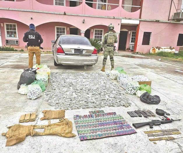 The State Attorney General’s Office (FGJE) of Tamaulipas informed that as a result of intelligence and investigation work carried out jointly with the Mexican Navy, in the town of Nuevo Progreso, municipality of Rio Bravo, an irregular monitoring center operated by a criminal group was dismantled and unregulated drugs were seized, as well as plastic bags with green and dry grass with the characteristics of marijuana.
