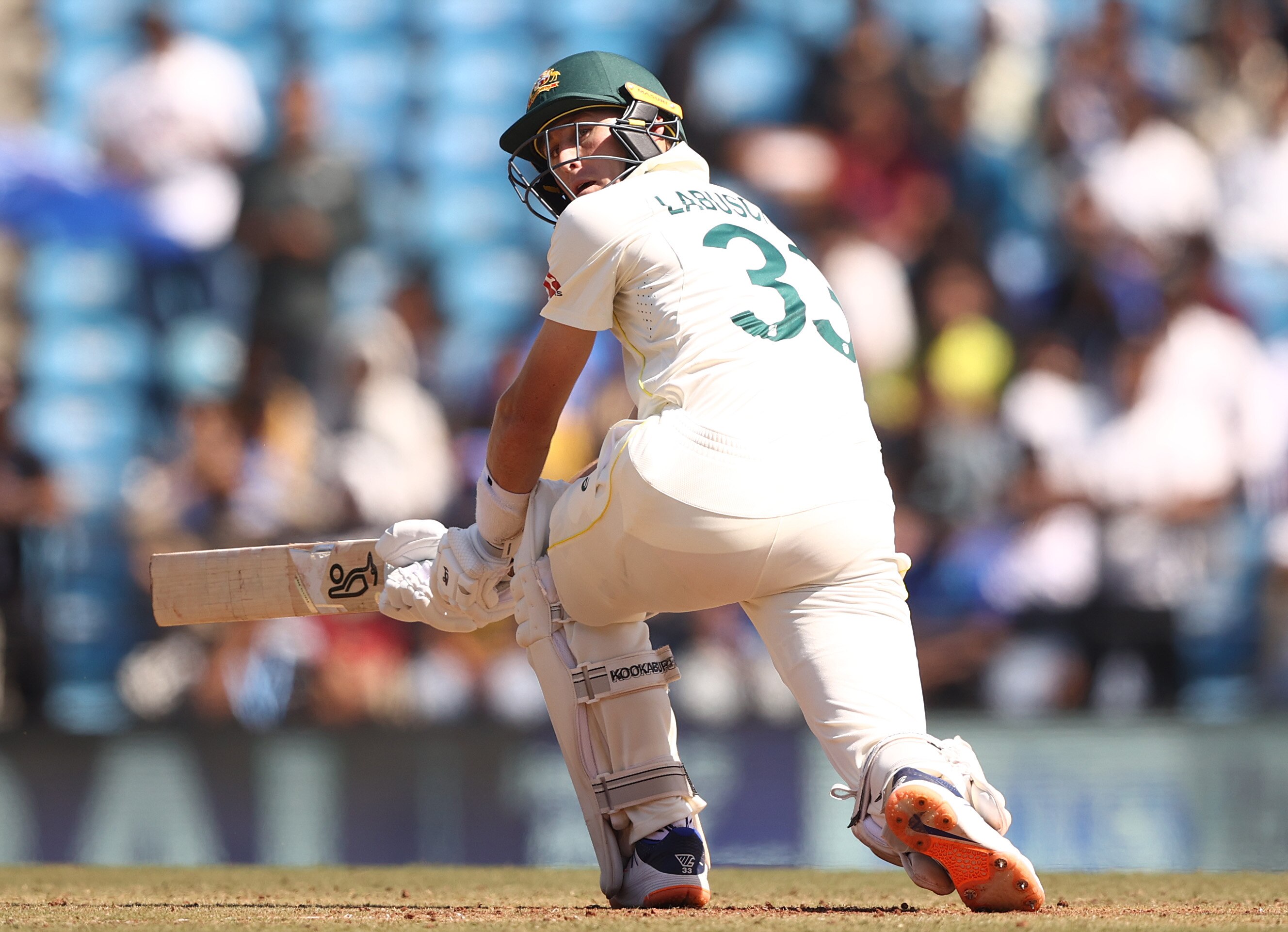 Solid defence from Marnus back in front of his stumps.