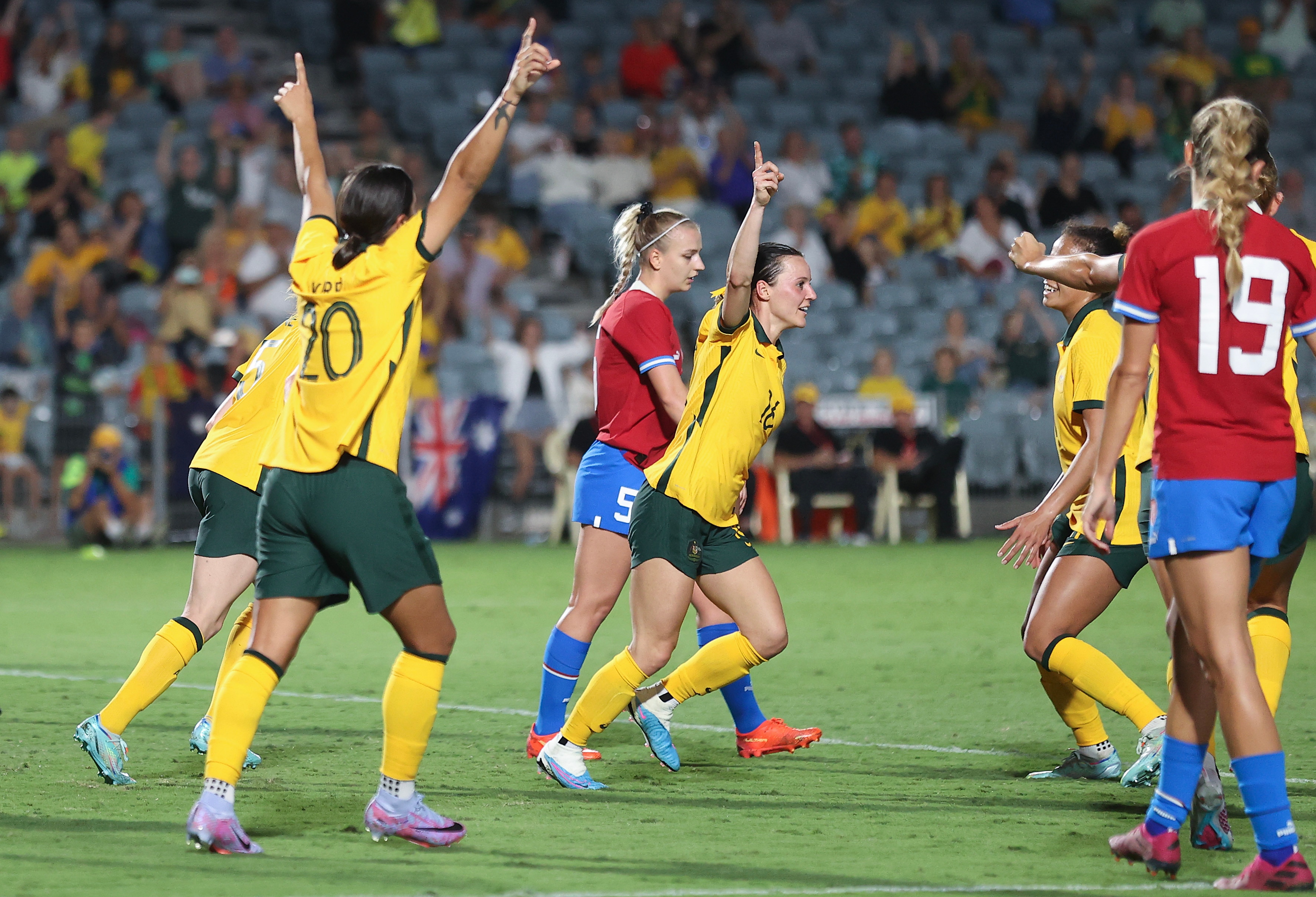 Caitlin Foord marks her return with an easy header off a perfect Steph Catley free-kick.