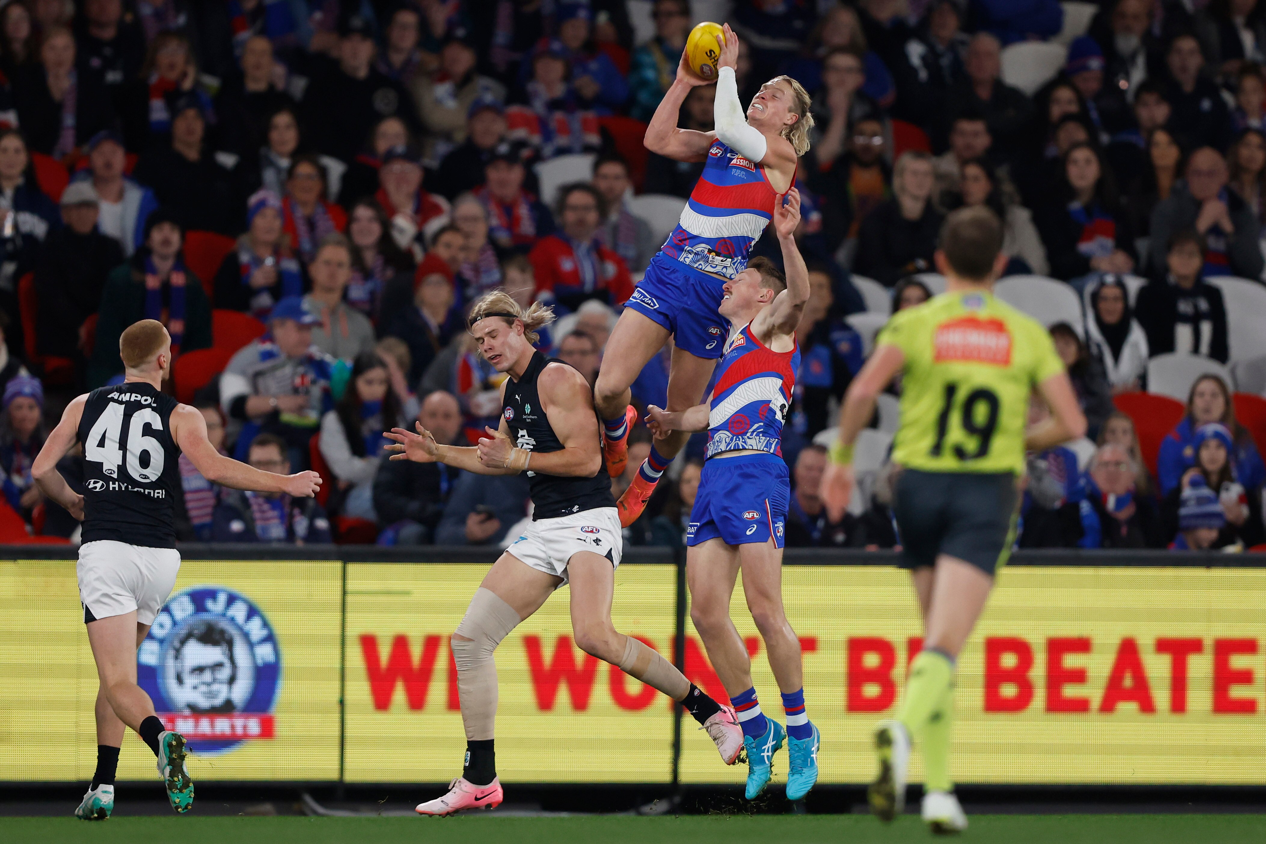 Parker (two majors) kicked his 200th career goal to mark his return since breaking his arm in the pre-season and serving a six-game VFL suspension. He received thunderous applause from the 34,663-strong crowd
