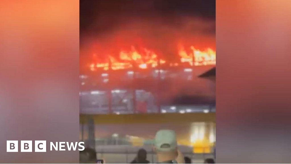 Footage posted on social media shows huge flames engulfing the roof of Terminal Car Park 2.