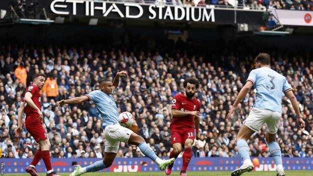 Liverpool caught City with a counter-attack after 17 minutes to take the lead, Diogo Jota making the break before Mohamed Salah applied a thumping finish.