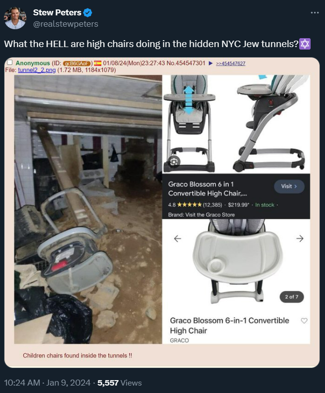 What’s more, is that a high chair is seen in a photograph of the tunnel system, which was sealed off by NYC authorities and reportedly filled with concrete, burying and destroying any potential evidence related to additional crimes possibly committed underground.