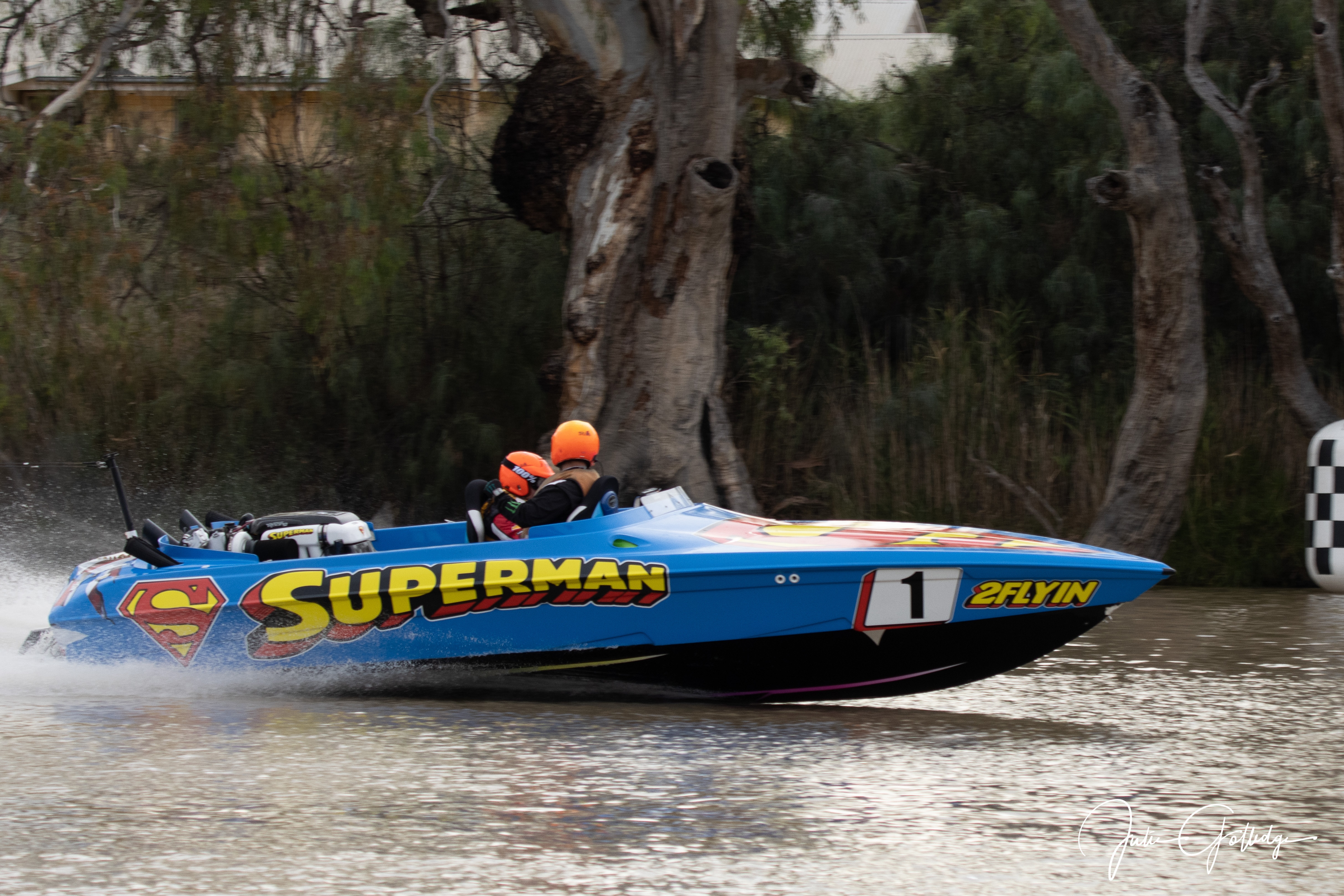 Competitors race at speeds between 80 and 120 kilometres per hour and navigate 120 bends in the river.