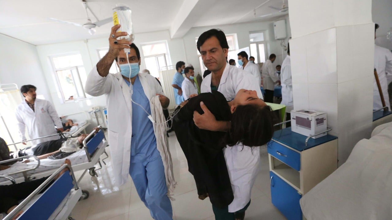 An Afghan school girl receives hospital treatment after being admitted for symptoms of poisoning, in Herat, Afghanistan in 2015. On Sunday, nearly 80 girls were poisoned and hospitalised in two separate attacks at their primary schools in northern Afghanistan, a local education official said. Photo: EPA