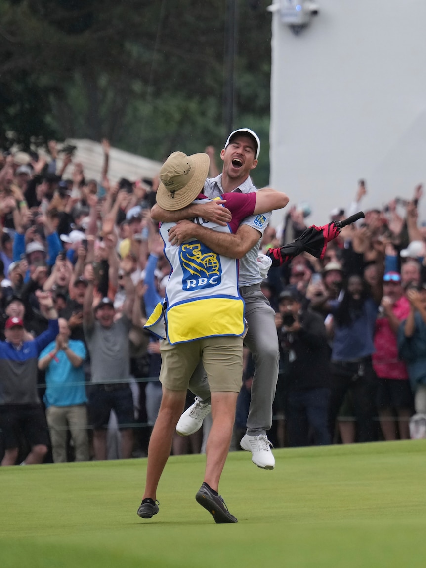 The win set off wild scenes at the Oakdale Golf and Country Club in Toronto, as Canadian golf fans roared and danced in the rain after Taylor made a 22-metre putt to win.