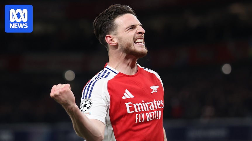 Declan Rice has curled home two superb free kicks to help give Arsenal a 3-0 win over defending champion Real Madrid in the first leg of the Champions League quarterfinals.