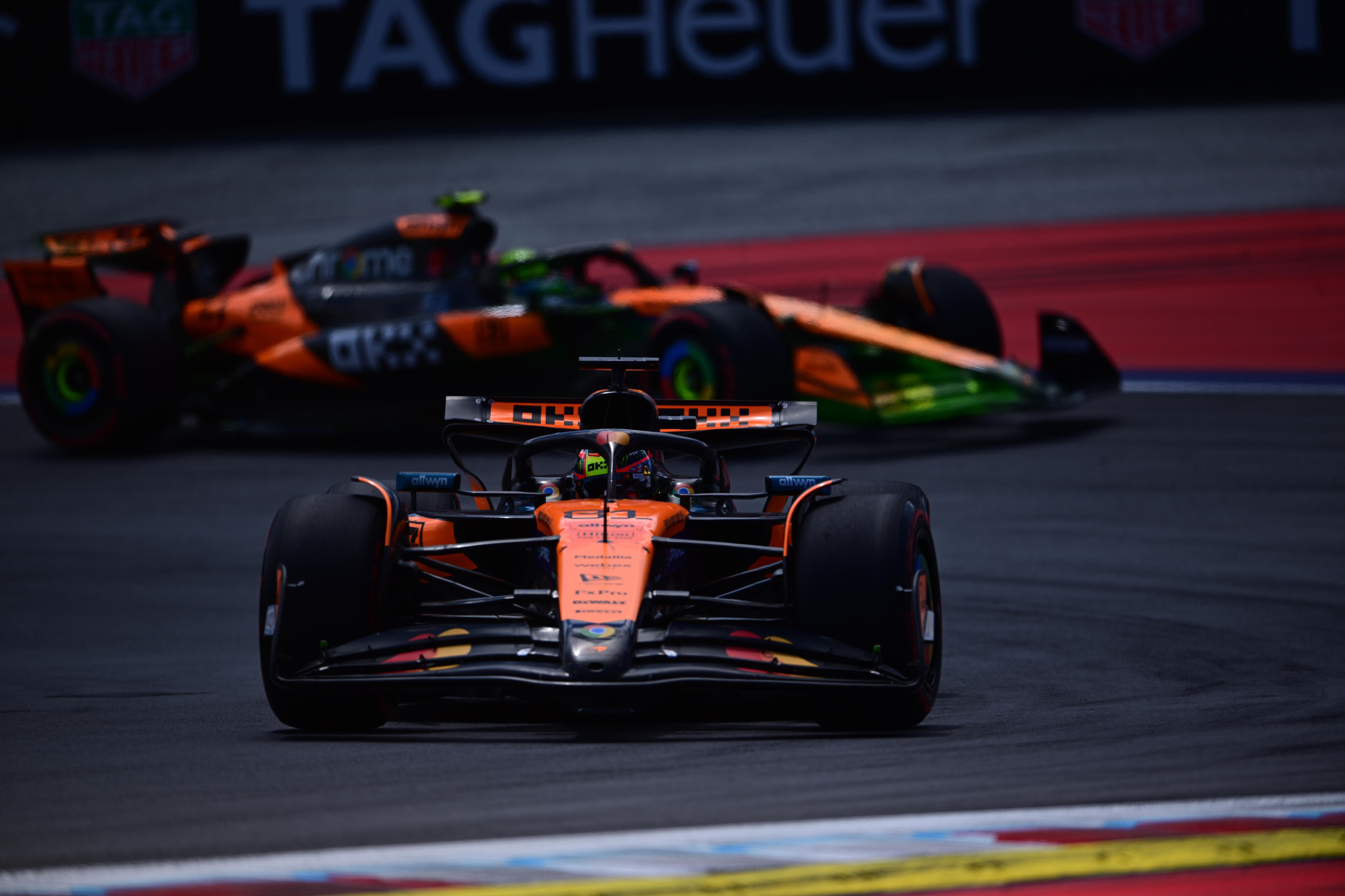 Australian Formula 1 drivers’ championship leader Oscar Piastri will start Sunday’s Austrian Grand Prix third, while his teammate has stormed to pole position.