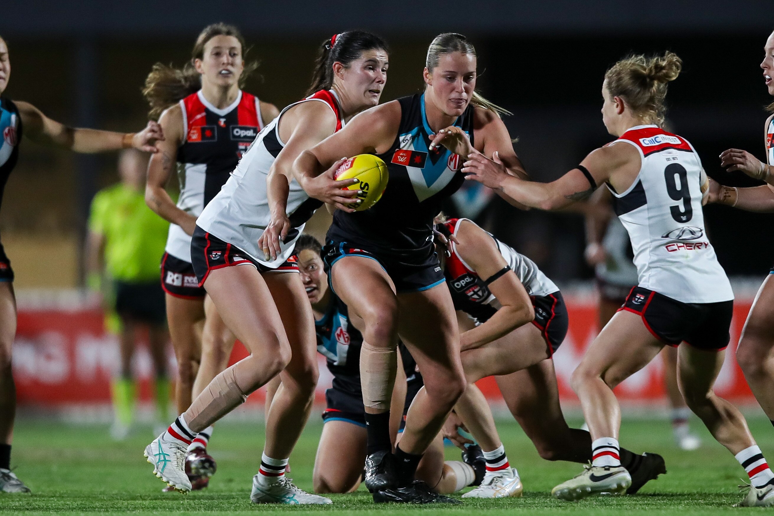 That reduced Port’s lead at the half to 20, but that blew out to 28 at three-quarter time after they held St Kilda scoreless In the third and Saint kicked her second.