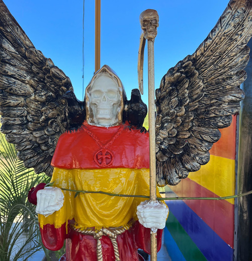 Feature image: An altar to Santa Muerte found by authorities in El Salvador. Credit: Attorney General’s Office of the Republic of El Salvador.