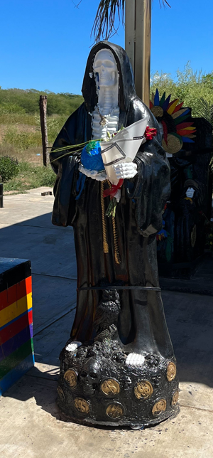 Imagers in text: Santa Muerte altar and statues in Culiácan, Sinaloa. Credit: Parker Asmann and Victoria Dittmar.