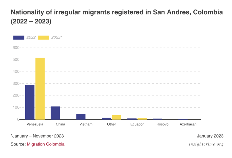 Similar cases occurred in 2023. On December 5, authorities dismantled a migrant smuggling network that transported migrants bound for the United States, Canada, and Australia to San Andrés. The organization was made up of 19 civilians who recruited the migrants and hosted them in different inns. Five navy officers and a Colombian migration official were accused of failing to follow maritime signaling regulations, alerting the network to the location of military vessels, and affixing false stamps in the migrants’ passports.