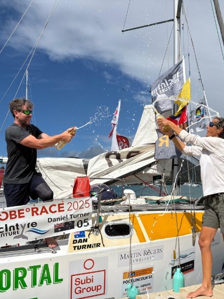 There was champagne and smiles as Dan Turner sailed into Antigua, in the Caribbean Sea, this week.
