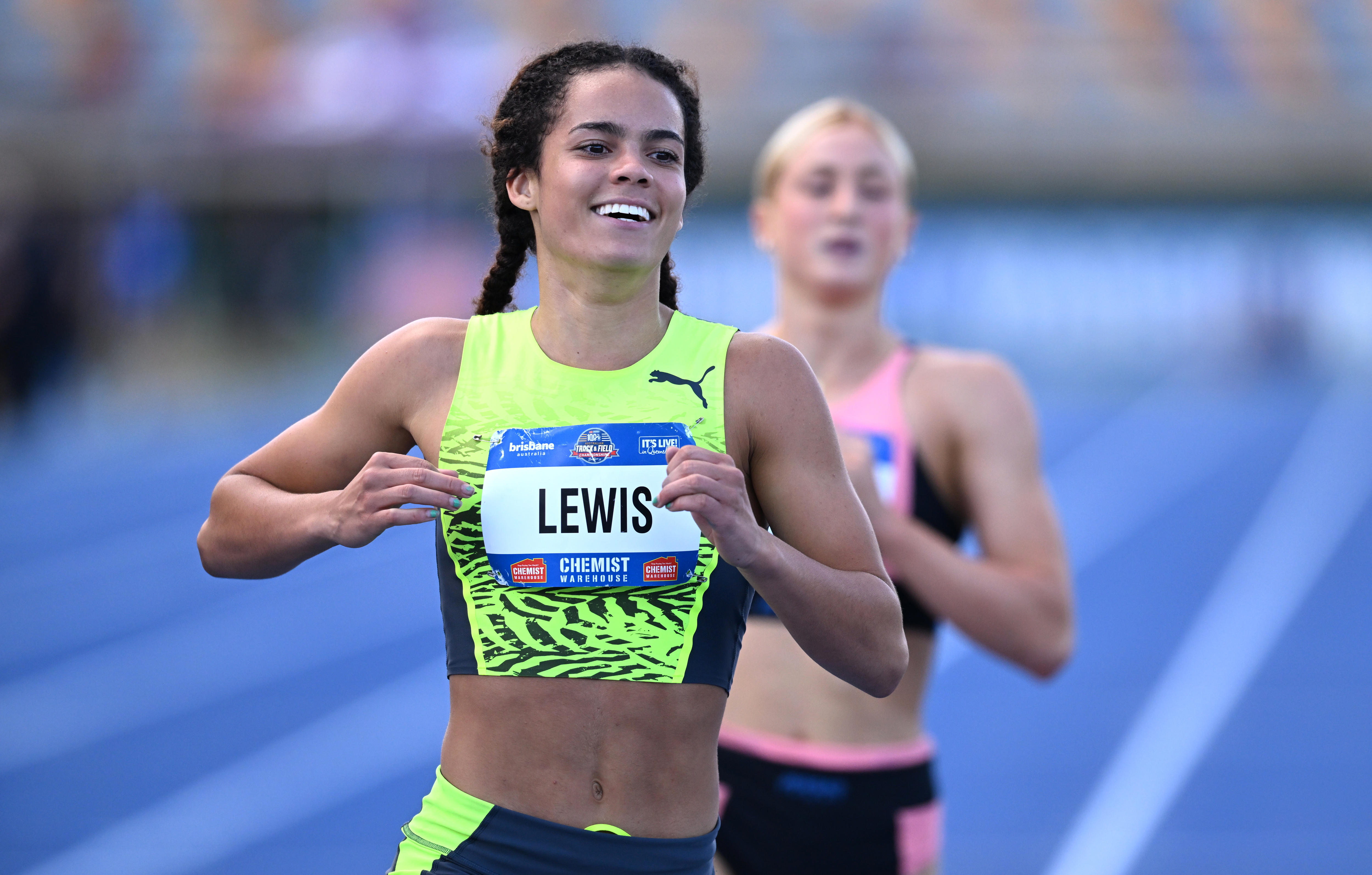 Torrie Lewis has shown why she is considered a rising star of Australian track and field after completing the sprint double at the national championships in Brisbane.