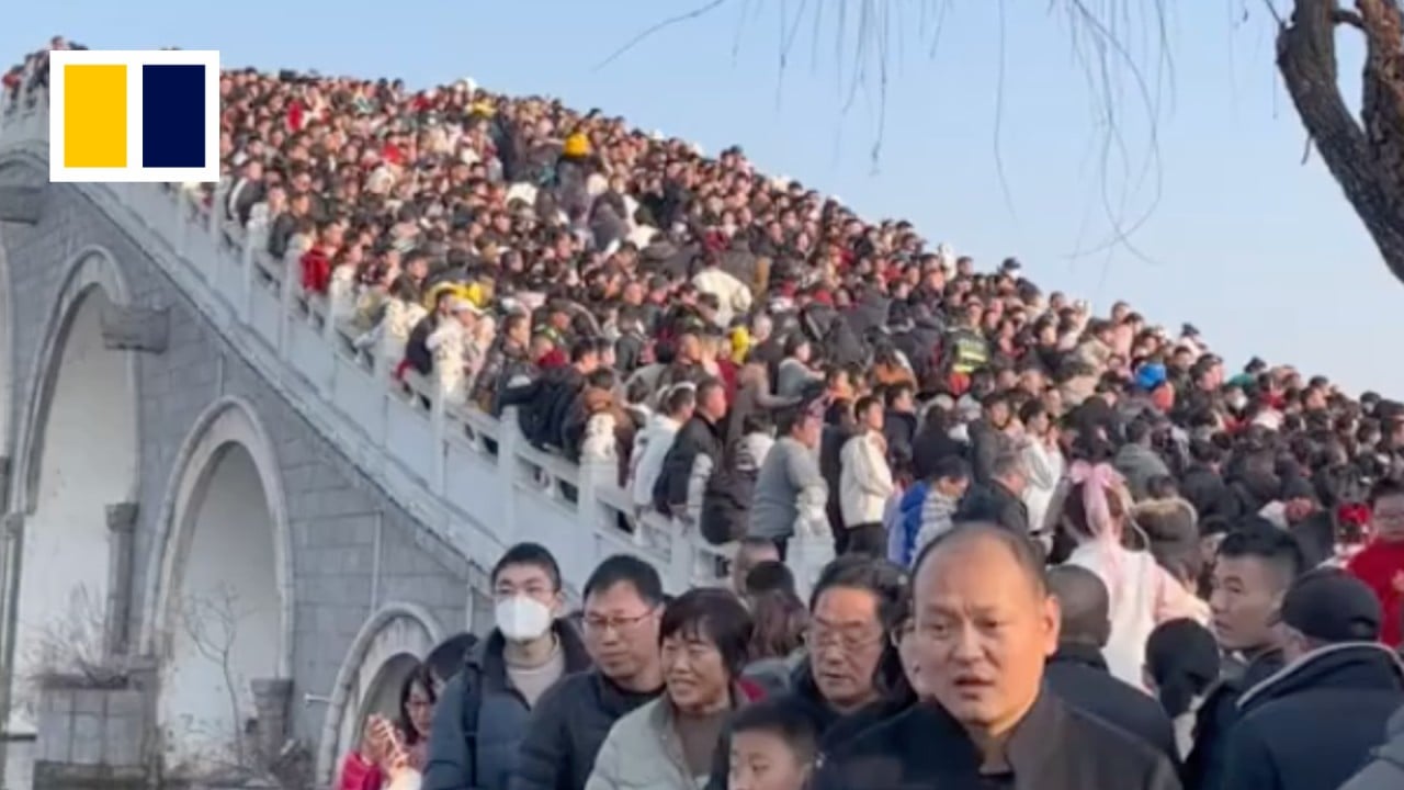 Bridge in China swamped with tourists during Lunar New Year holiday