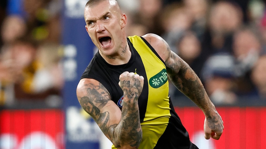 A combined seven goals from Trent Cotchin and Dustin Martin have helped Richmond ignite their AFL season with a 24-point upset win over Geelong.