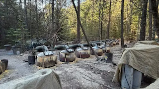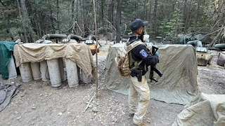 Meanwhile, at the second camp-laboratory—situated in an open area measuring approximately 40 meters—authorities located: a stockpile of sacks containing a white substance, two condensers, two boilers, six 1,000-liter containers, and five drums holding liquid substances.