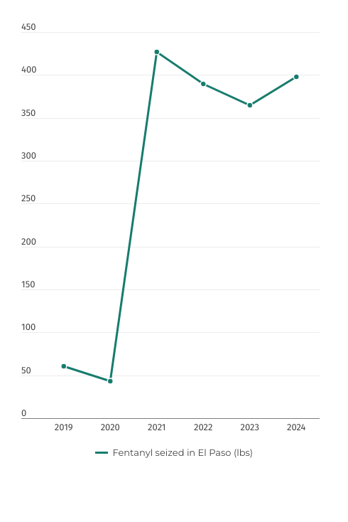 Fentanyl seizures began to increase at the Juarez – El Paso border crossing from 2021