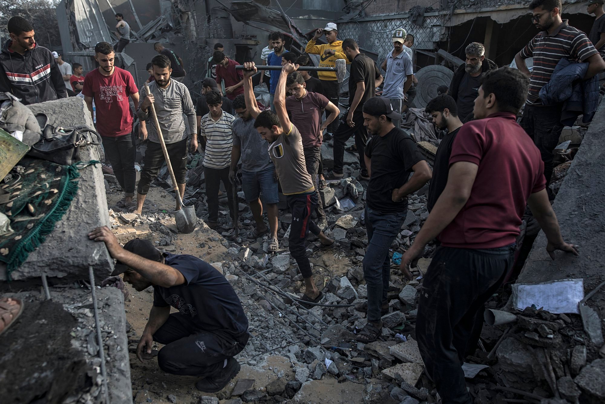 Palestinians search for bodies and survivors among the rubble of a residential building following an air strike at the Maghazi refugee camp in the central Gaza Strip. Photo: EPA-EFE