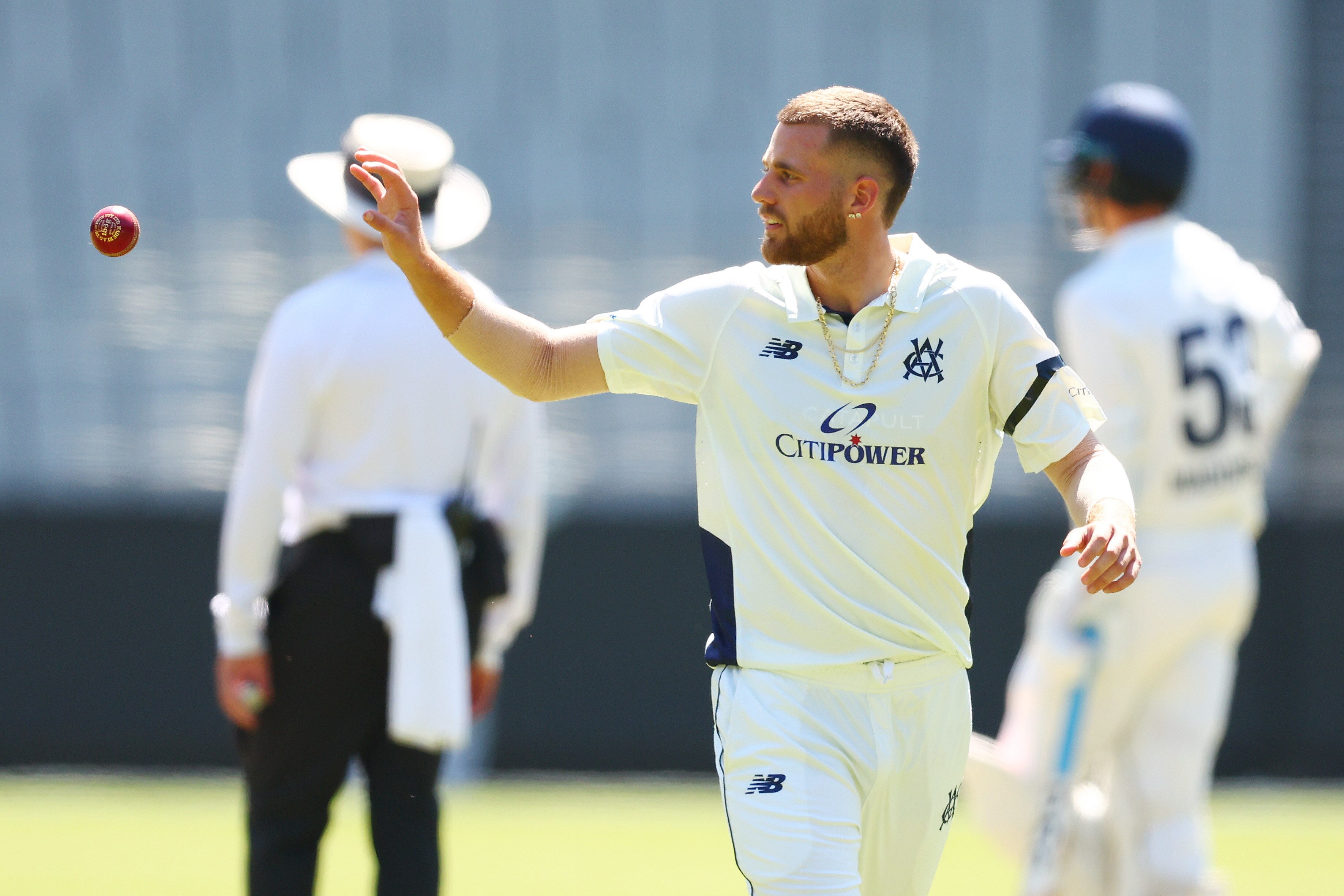 Seamer Fergus O’Neill (33 not out) provided great support for Peake in an unbeaten 84-run partnership for the Vics, who lost Sam Harper (29) at an important time when the wicketkeeper was batting well.