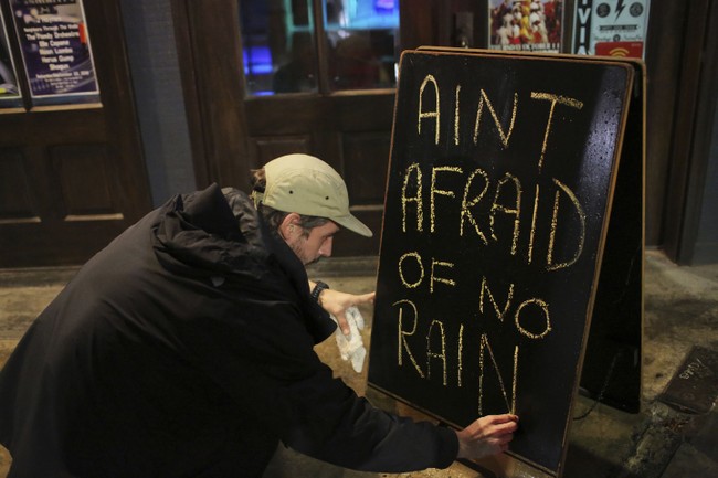 Video taken by bystanders showed the man do a cannonball into the aquarium and later stand under the waterfall.