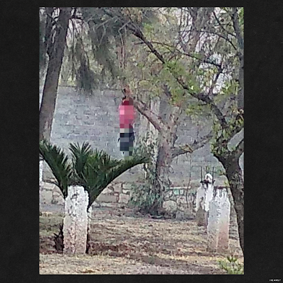 The body was hung from a tree near Cervantes Corona Avenue, close to a local high school where students were arriving for class. Anonymous México reports that the dead body was in full view of the students.