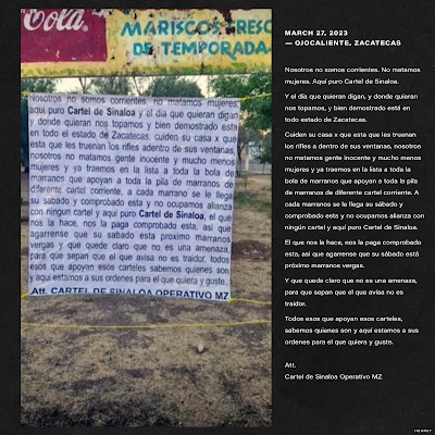 We are not low-life thugs. We do not kill women. Here, we are 100% Sinaloa Cartel.