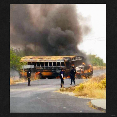 Hitmen were said to have commandeered a school bus in the area of Villa Hidalgo, which they used to block a roadway into La Honda, setting it ablaze.